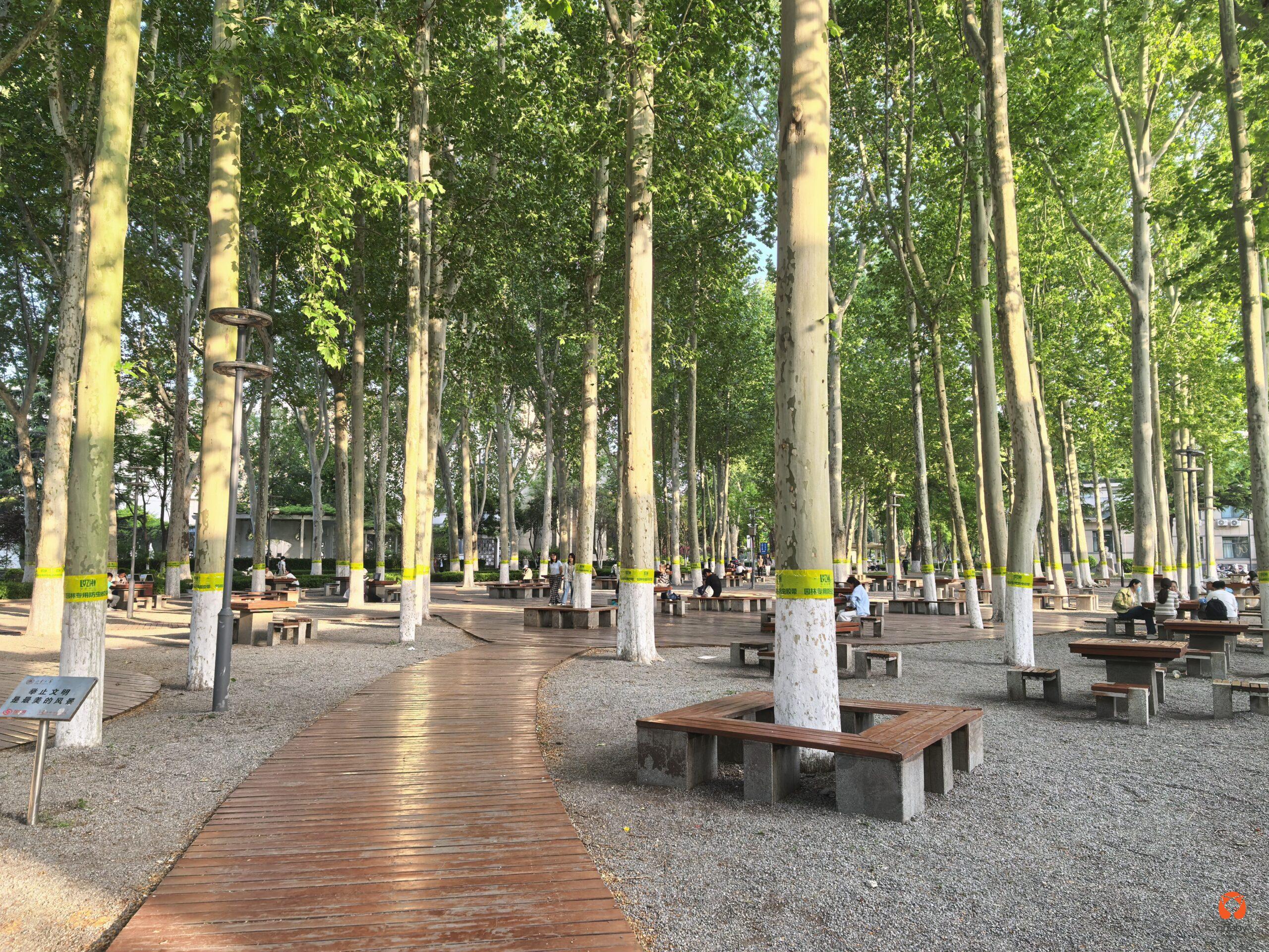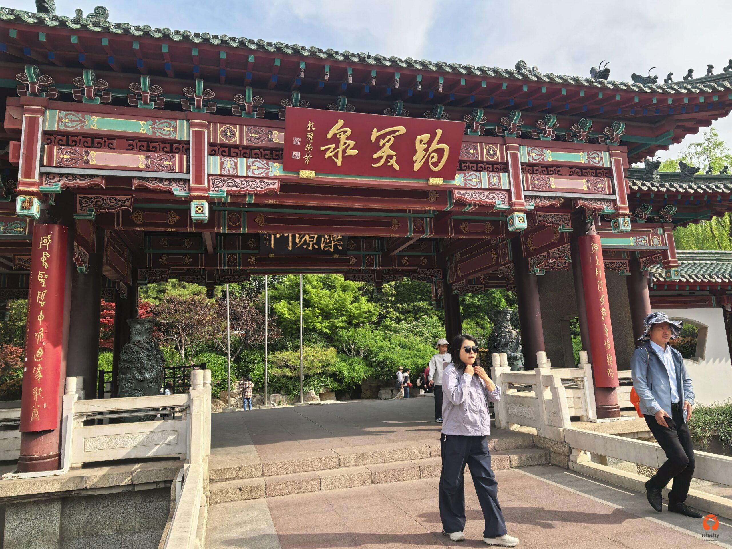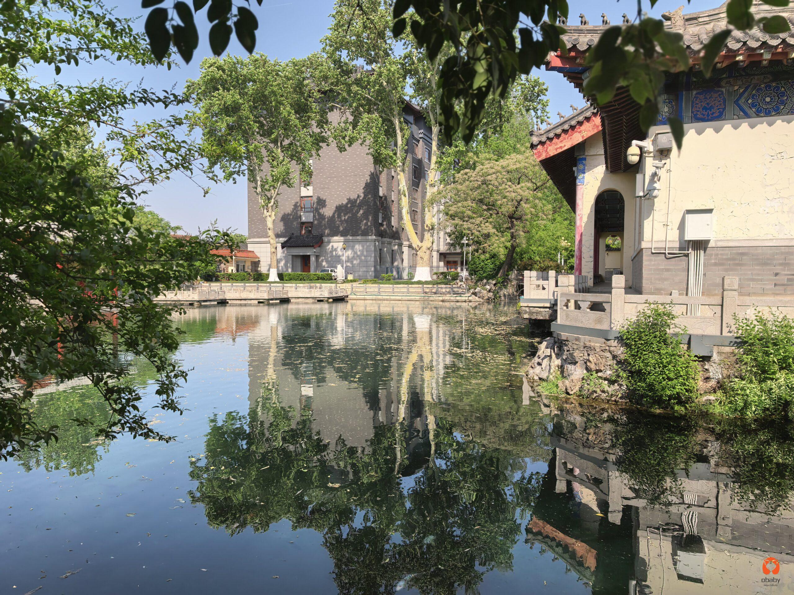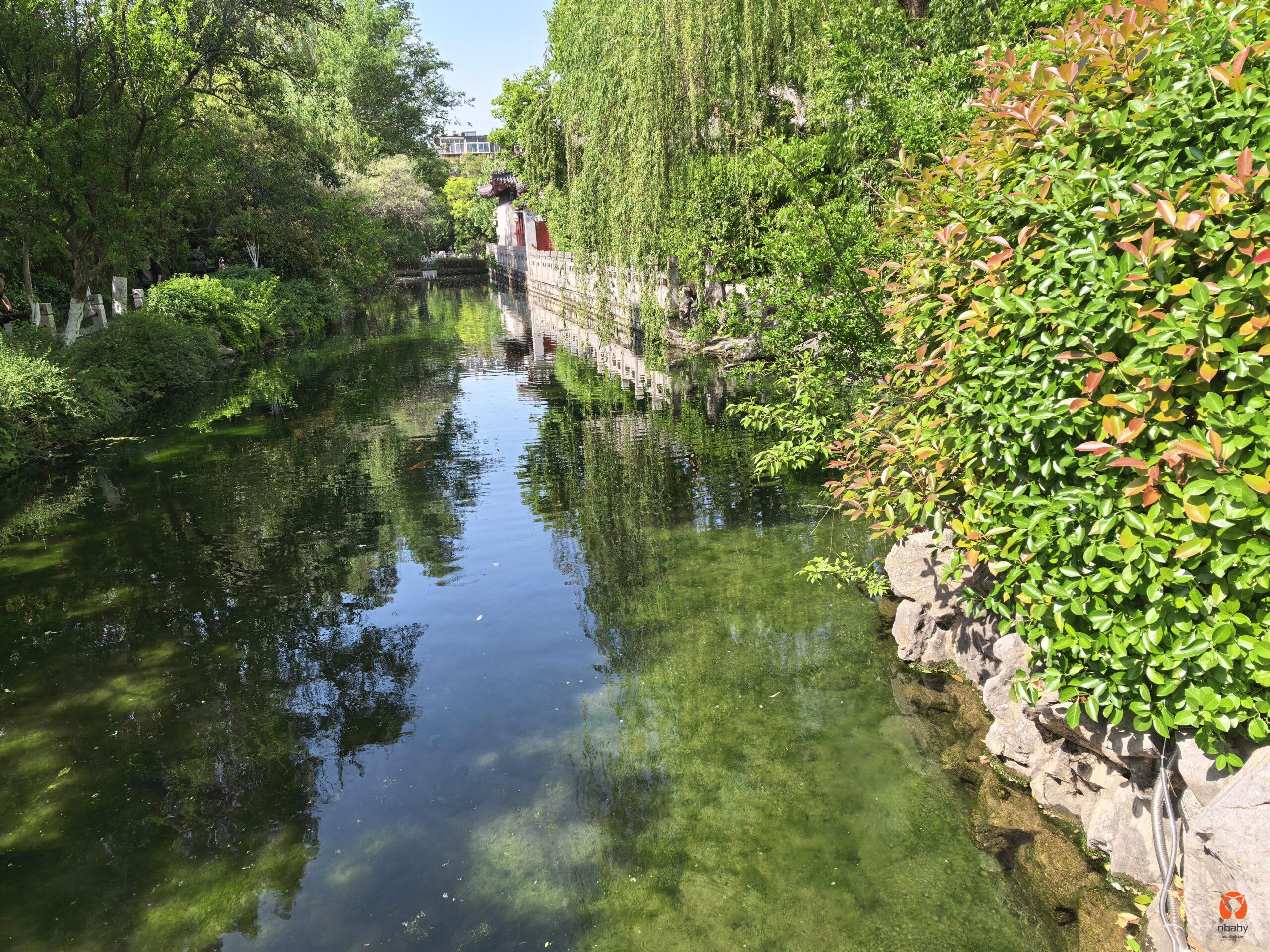 中午回到住处稍微休息会儿,下午出门的时候从酒店窗户看出去,还以为是阴天了,出门以后发现完全不是,艳阳高照。沿着珍珠泉内部游览,到北门的时候却发现是封闭的,根本出不去,如果要想去大明湖,只能原路返回,从珍珠泉公园围墙西侧绕行过去。