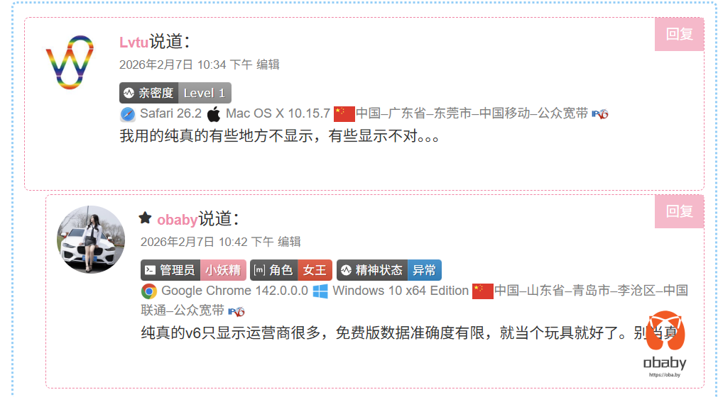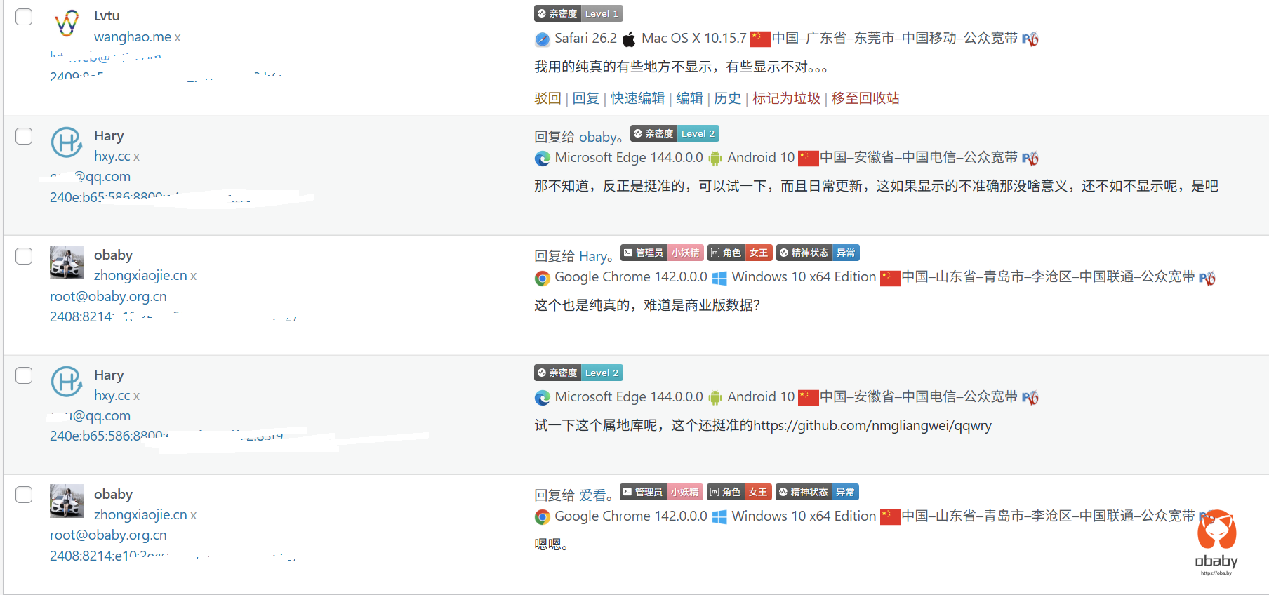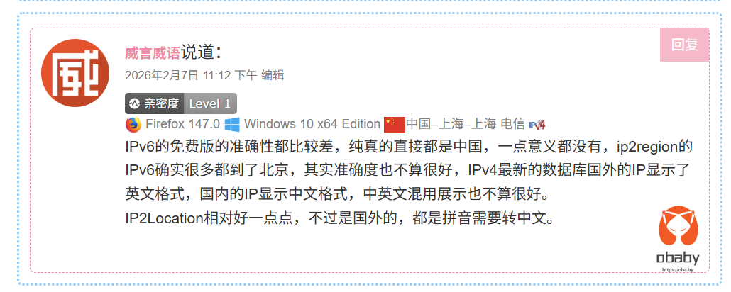 有的宝子的评论还没来的及回复,后面会回复的哈。在忙着测试hary提供的版本,不过整体测试下来,这个版本的qqwry版本的数据v6归属地精度,的确提高了一大截。
