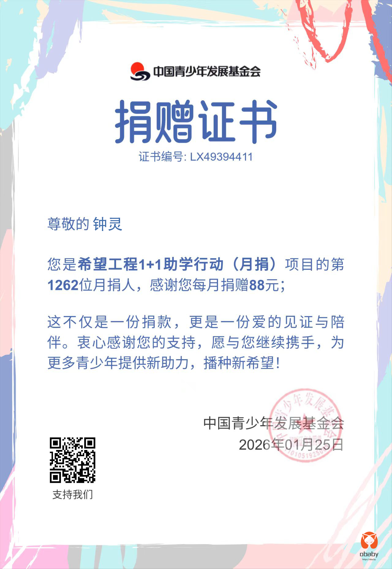 有时候也在想,挣钱到底为什么?其实也说不上来,为了花?还是为什么。到现在参与的月捐已经过了三个月,每个月88。