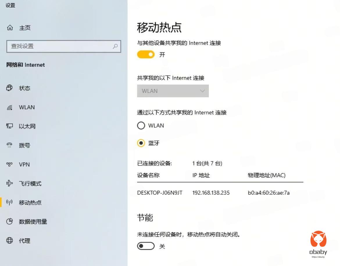 2. 在热点设备上,激活热点并将其设置为通过蓝牙共享。